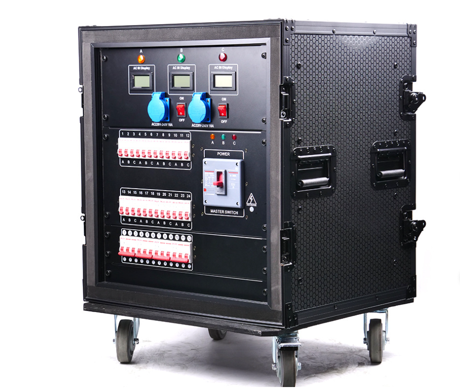 The box is made of double-layer aluminum, with fire-resistant cotton in the middle, greatly improving electrical safety. The output is equipped with LED indicator lights for easy control. At the same time, it allows you to have a clear understanding of the working status of the electrical box throughout the entire cabinet, and the connectors can be selected from WEPU/SMSON/Neutrik for convenient real-time matching with your display screen. The whole cabinet components can be selected from DEL IXI/Schneider Electric.