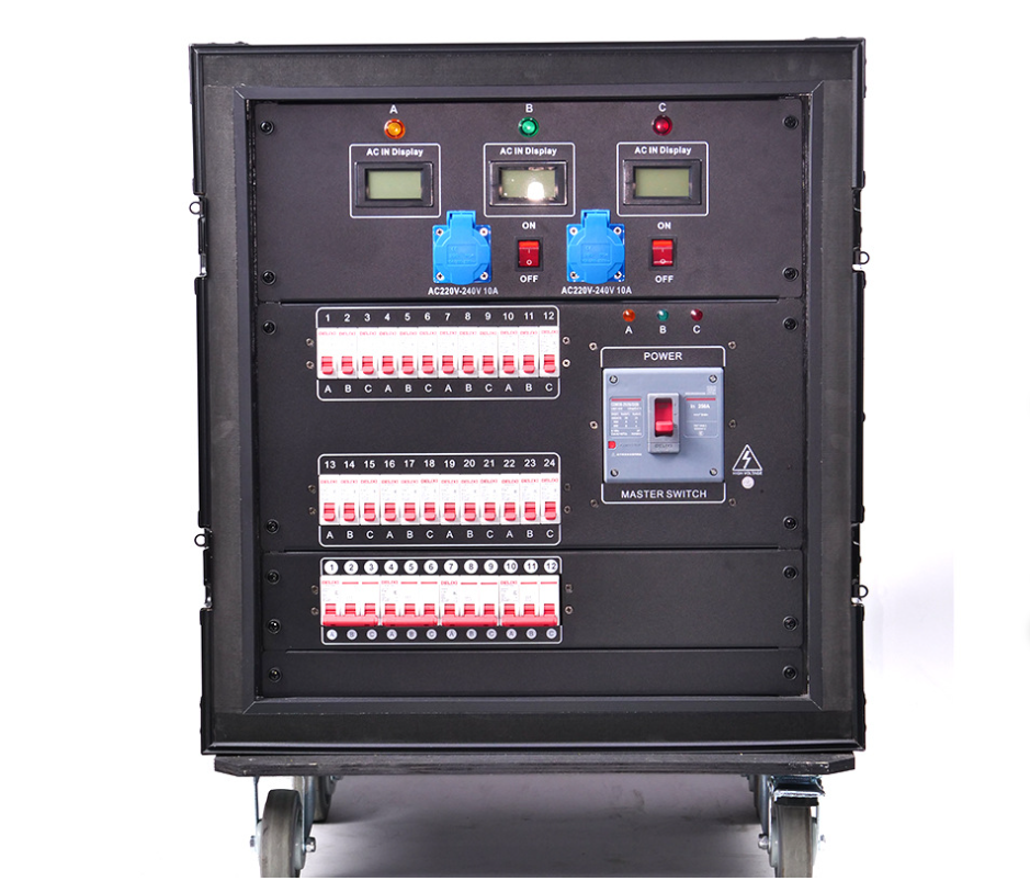 The box is made of double-layer aluminum, with fire-resistant cotton in the middle, greatly improving electrical safety. The output is equipped with LED indicator lights for easy control. At the same time, it allows you to have a clear understanding of the working status of the electrical box throughout the entire cabinet, and the connectors can be selected from WEPU/SMSON/Neutrik for convenient real-time matching with your display screen. The whole cabinet components can be selected from DEL IXI/Schneider Electric.