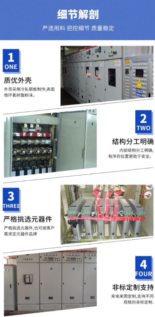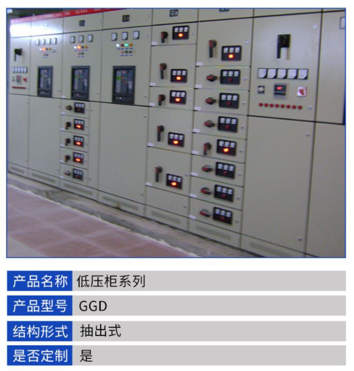 GGD型低压固定开关设备具有分断能力高,动热稳定性好,电气方案灵活、组合方便、系列性、实用性强、结构新颖、防护等级高等特点,既缩短了生产周期,提高了效率,又节约了社会资源。可以用作低压成套开关设备的更新换代产品使用。